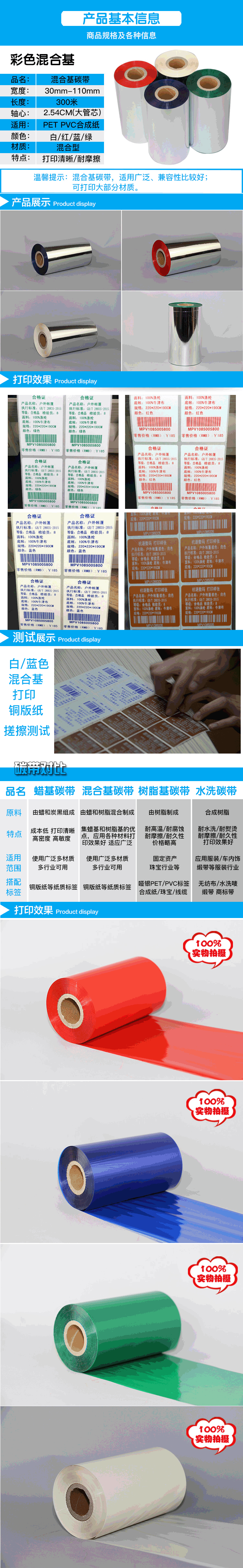 產(chǎn)品名稱 : 廠家直銷 彩色混合基碳帶 服裝 洗水嘜 物流 碳帶 價(jià)格實(shí)惠歡迎咨詢