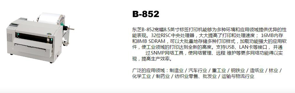 東芝B-852寬幅8.5英寸標(biāo)簽打印機(jī)能夠為多種環(huán)境和應(yīng)用領(lǐng)域提供優(yōu)異的性能表現(xiàn)。32位RISC中央處理器,大大提高了打印和處理速度;16MB內(nèi)存和8MB SDRAM,可以大批量地存儲多種打印樣式,加載功能強(qiáng)大的應(yīng)用軟件,使工作領(lǐng)域的打印達(dá)到全新的高度。